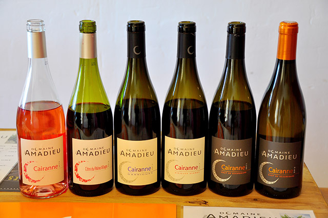 - Cairanne Vieilles Vignes: Terroir Ton-Kalk terrassiert und Garrigues, mehr als 50-jährige Reben; 50% Grenache, 20% Syrah, 20% Mourvèdre, 10% Carignan; Cuvaison während mind. 21 Tagen, wenig remontages und pigeages, Ausbau 15-18 Monate im Stahltank und grossen Eichenfässern; Abfüllung sans collage und leicht filtriert; Produktion ca. 12000 Flaschen.